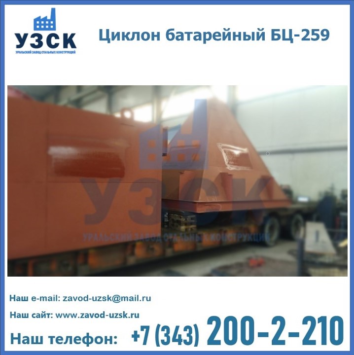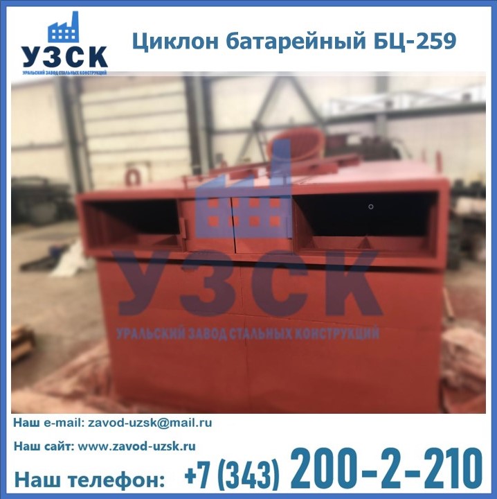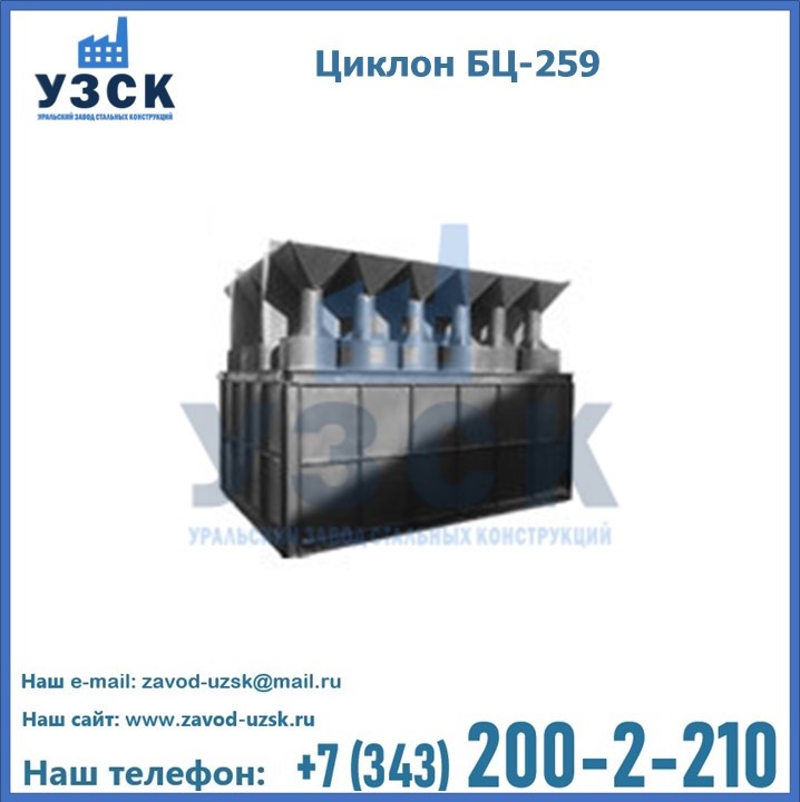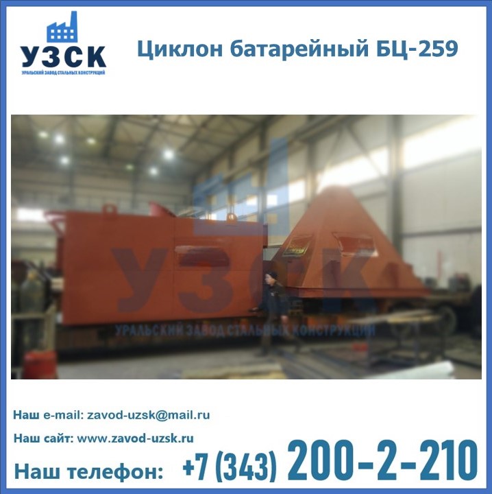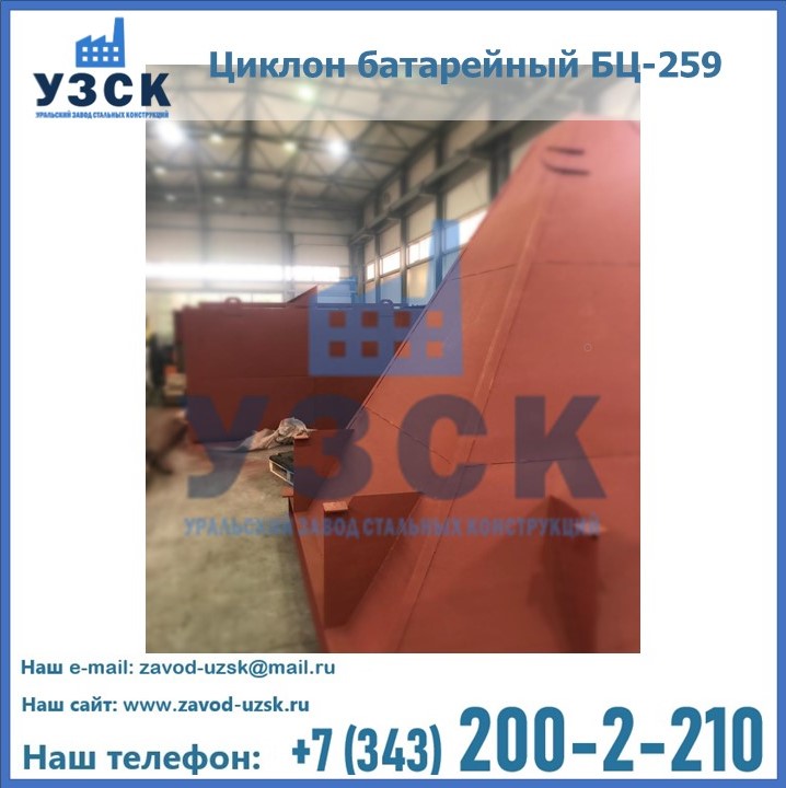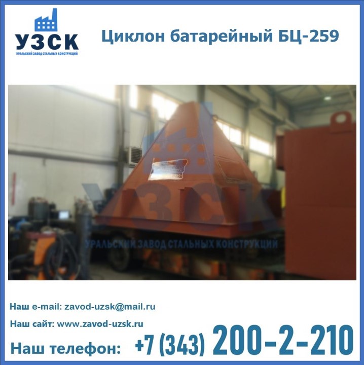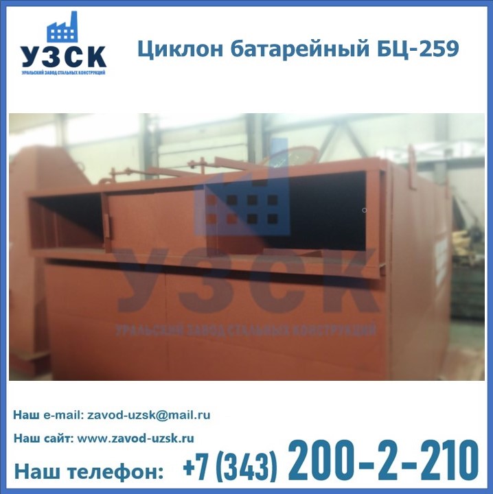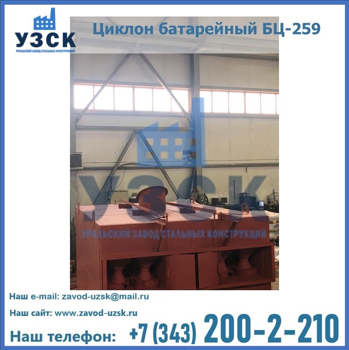 Приобрести качественное оборудование, в том числе, циклоны БЦ-259, можно в компании УЗСК в Новочебоксарске. Мы предлагаем долговечную и надежную продукцию по приемлемой цене. Заказать и купить циклоны или другие изделия высокого качества можно через сайт Уральского Завода Стальных Конструкций, или позвонив по указанному в разделе «Контакты» телефону.