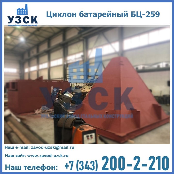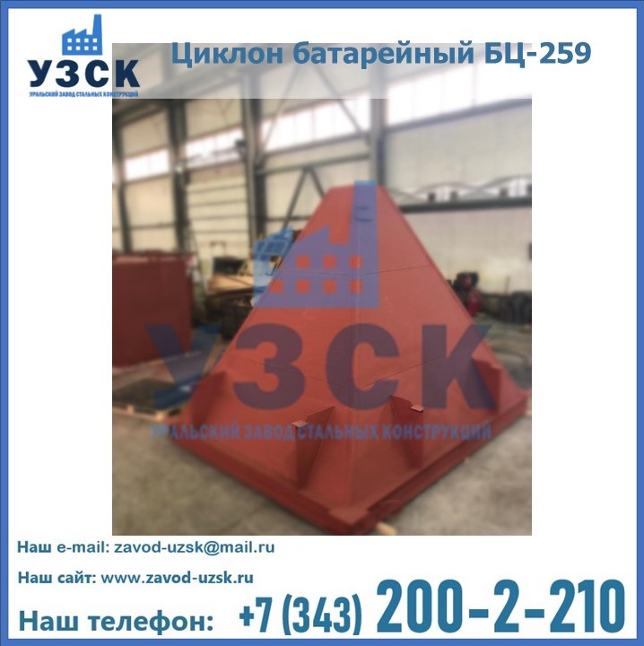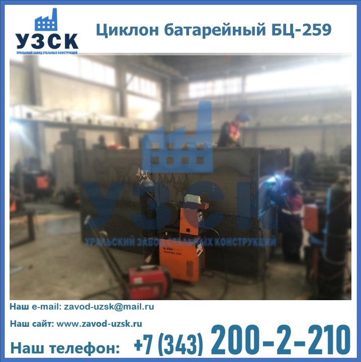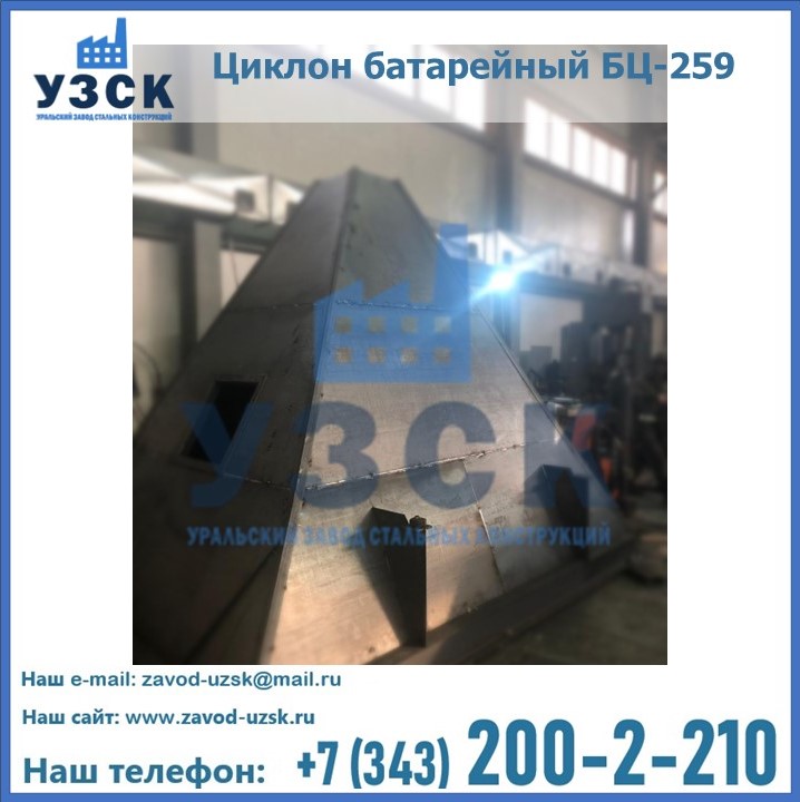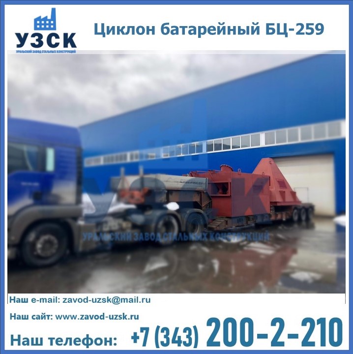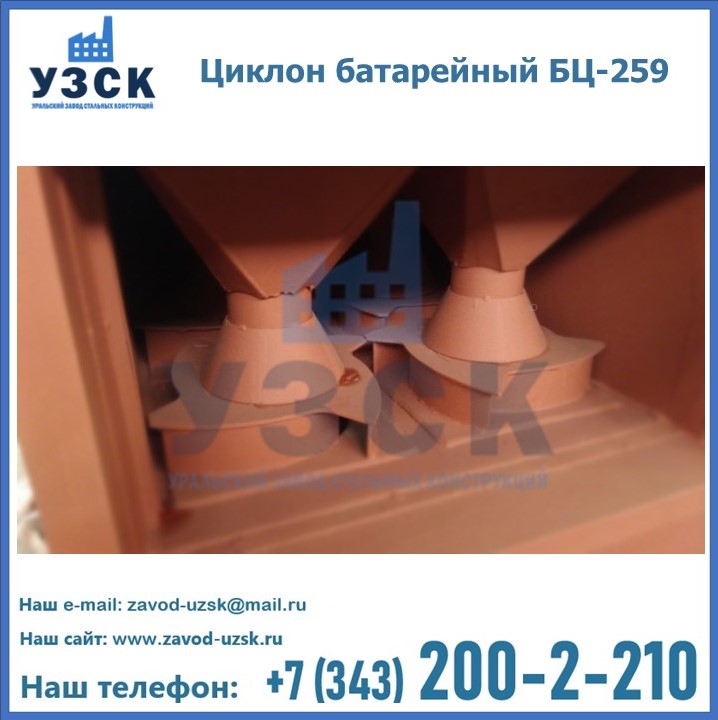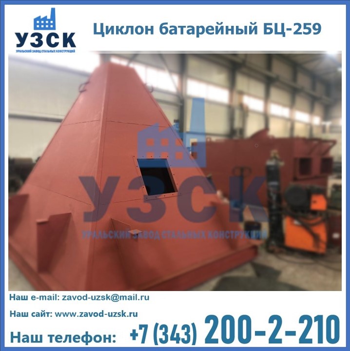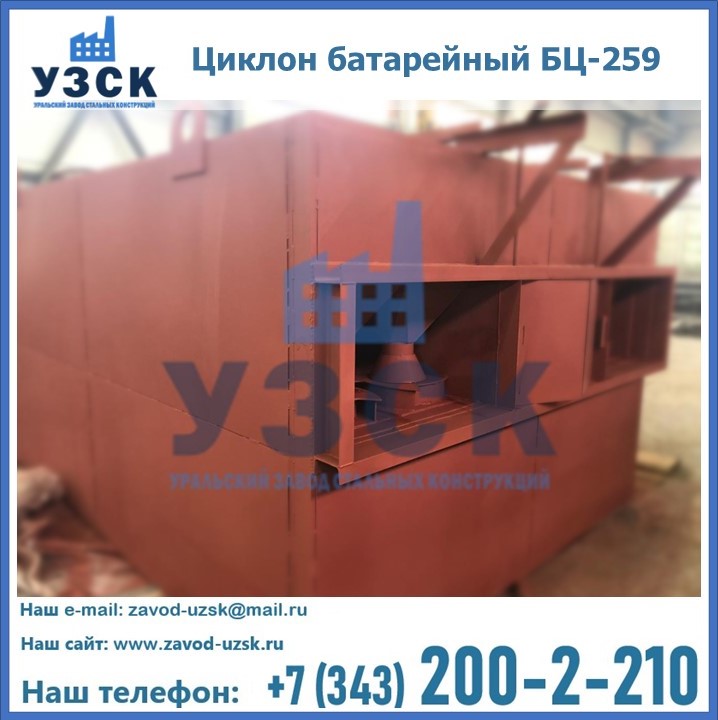 Приобрести качественное оборудование, в том числе, циклоны БЦ-259, можно в компании УЗСК в Новочебоксарске. Мы предлагаем долговечную и надежную продукцию по приемлемой цене. Заказать и купить циклоны или другие изделия высокого качества можно через сайт Уральского Завода Стальных Конструкций, или позвонив по указанному в разделе «Контакты» телефону.