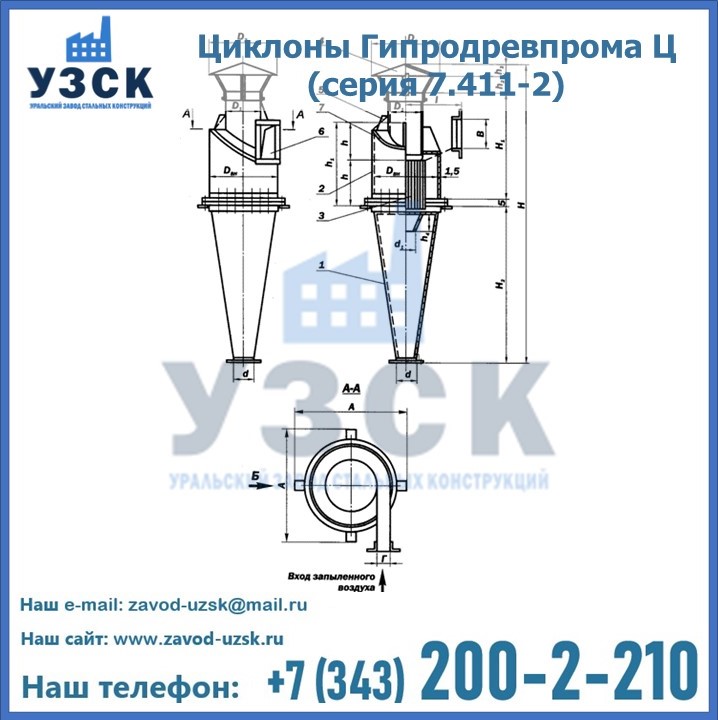 Циклоны Гипродревпрома Ц (серия 7.411-2) высокого качества можно купить в компании «УЗСК» в Новочебоксарске. Наши специалисты предоставят всю необходимую информацию информацию и помогут с выбором модели циклона. Подробные технические характеристики, конструкцию, параметры, ассортимент и стоимость продукции можно также найти на сайте УЗСК.