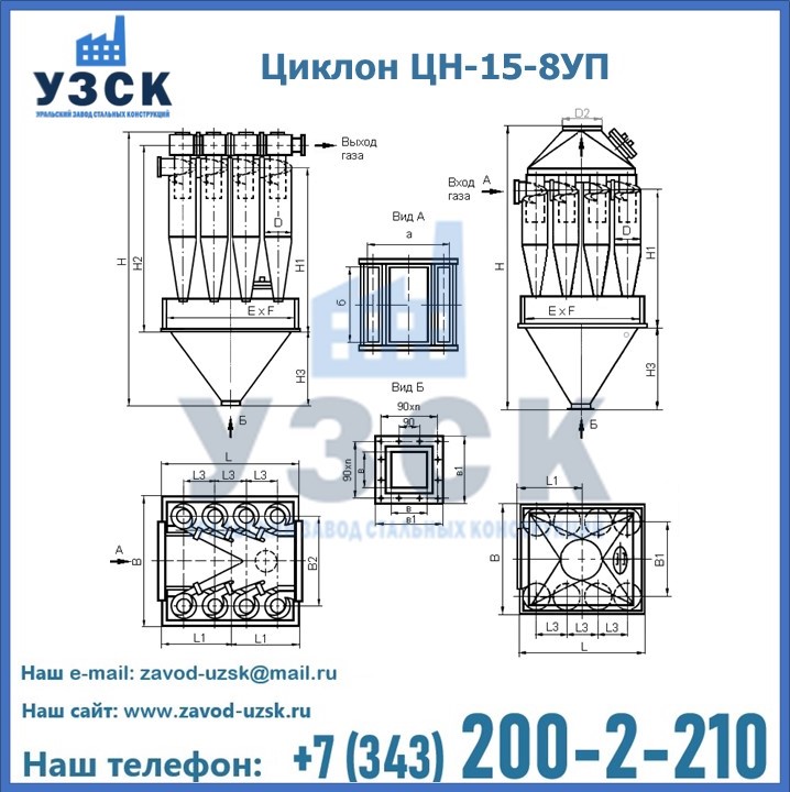 Завод «УЗСК» в Новочебоксарске предлагает большой выбор циклонов ЦН-15-500×8УП и прочих устройств, полностью укомплектованных и готовых к эксплуатации. Мы гарантируем соответствие оборудования всем требованиям ГОСТ и ТУ, износостойкость и высокую производительность предлагаемого оборудования. Уральский Завод Стальных Конструкций изготавливает и продает надежное, эффективное и производительное оборудование, имеющее длительную гарантию и большой эксплуатационный ресурс. Если требуется изготовить циклон нестандартных размеров, то такой вариант выполнения заказа тоже предусмотрен, так как предприятие имеет собственные производственные площади и надежных поставщиков. На все поставляемое или производимое оборудование имеются чертежи и прочая техническая документация. Заказать и купить циклоны или прочее оборудование высокого качества и по доступной цене можно через наш сайт или по указанному в разделе «Контакты» телефону.