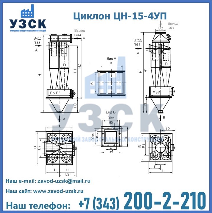 Завод «УЗСК» в Новочебоксарске предлагает большой выбор циклонов ЦН-15-900×4УП и прочих устройств, полностью укомплектованных и готовых к эксплуатации. Мы гарантируем соответствие оборудования всем требованиям ГОСТ и ТУ, износостойкость и высокую производительность предлагаемого оборудования. Уральский Завод Стальных Конструкций изготавливает и продает надежное, эффективное и производительное оборудование, имеющее длительную гарантию и большой эксплуатационный ресурс. Если требуется изготовить циклон нестандартных размеров, то такой вариант выполнения заказа тоже предусмотрен, так как предприятие имеет собственные производственные площади и надежных поставщиков. На все поставляемое или производимое оборудование имеются чертежи и прочая техническая документация. Заказать и купить циклоны или прочее оборудование высокого качества и по доступной цене можно через наш сайт или по указанному в разделе «Контакты» телефону.