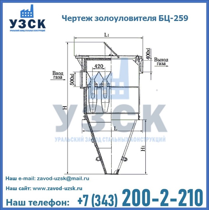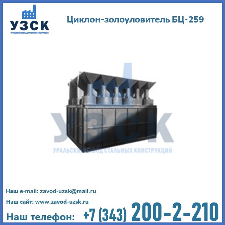 Если вы планируете купить то или иное оборудование, например, циклоны-золоуловители БЦ-259, то рекомендуем заказать данный товар на сайте УЗСК. Мы производим и реализуем продукцию высокого качества по приемлемой цене. Эксперты Уральского Завода Стальных Конструкций в Новочебоксарске проконсультируют вас по всем вопросам, помогут сделать выбор и оформить заказ без лишних временных затрат. Мы гарантируем соответствие нашей продукции всем требованиям ГОСТ и ТУ, а также износостойкость и высокую производительность предлагаемого оборудования. Если требуется изготовить циклон нестандартных размеров, то такой вариант выполнения заказа тоже предусмотрен, так как предприятие имеет собственные производственные площади и надежных поставщиков. На все поставляемое или производимое оборудование имеются чертежи и прочая техническая документация. Заказать и купить циклоны или прочее оборудование высокого качества и по доступной цене можно через наш сайт или по указанному в разделе «Контакты» телефону.
