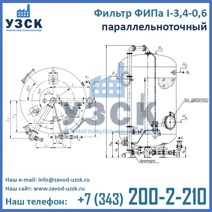 Производитель фильтров ФИПа параллельно-точных завод УЗСК предлагает два варианта комплектации ФИПаI 3,4-0,6 в Новочебоксарске: