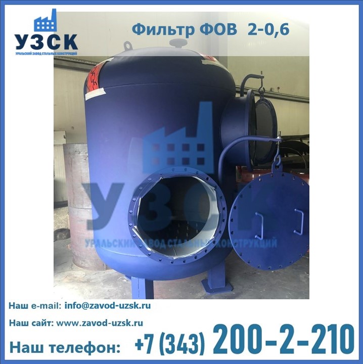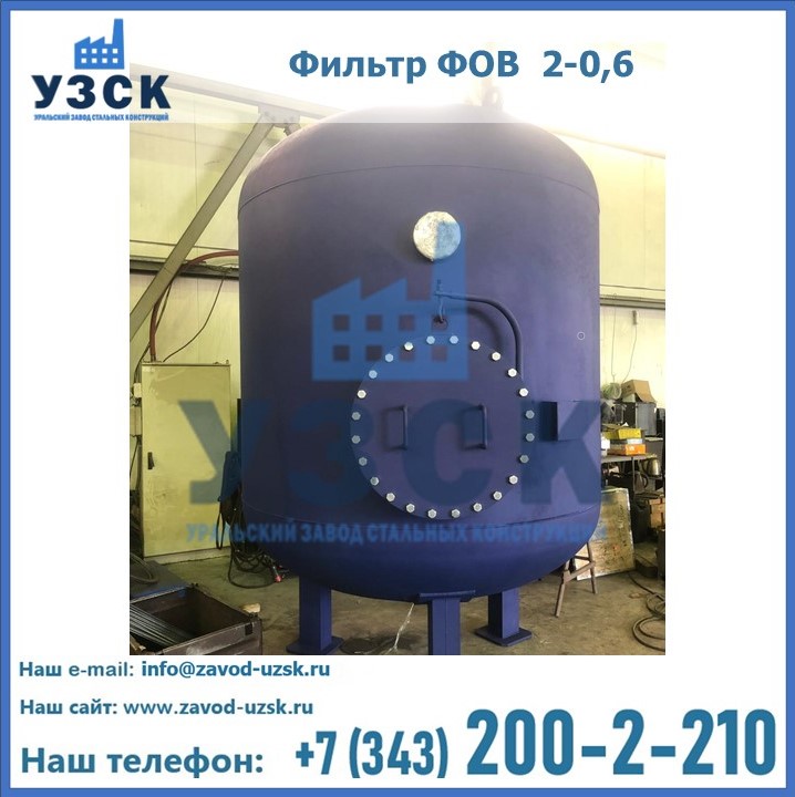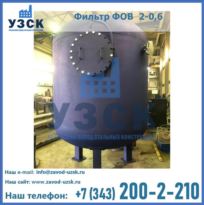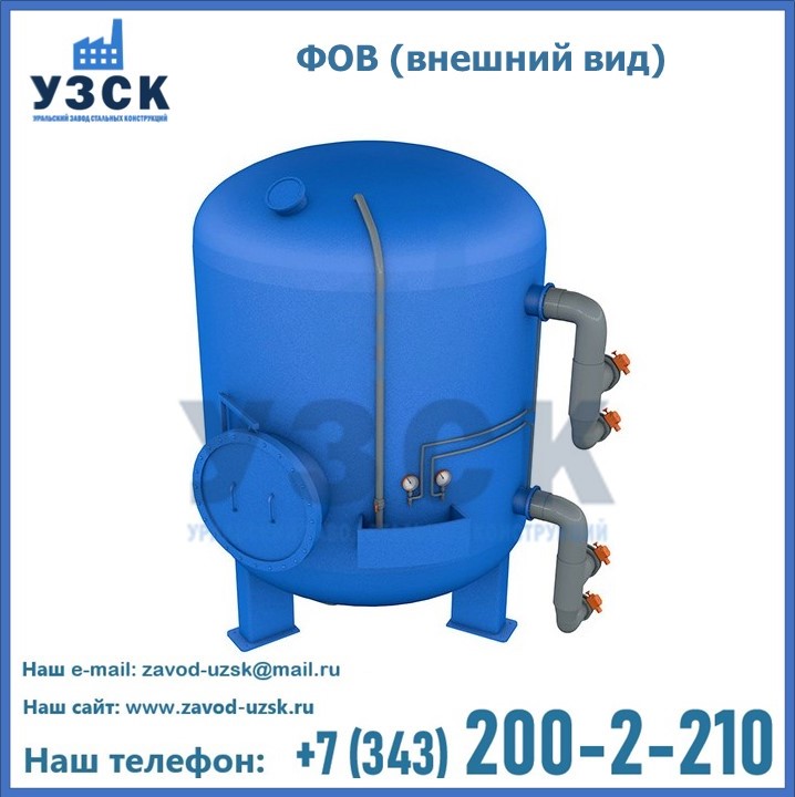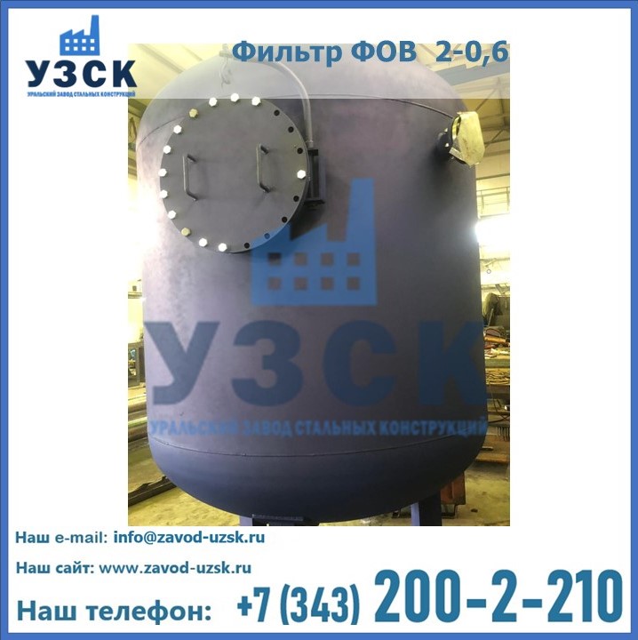 Удаление взвешенных веществ различного уровня дисперсности из рабочих жидкостей эффективно проводит фильтр осветлительный типа ФОВ (скорый или механический) — вертикально-цилиндрической формы установка, разработанная для систем водоподготовки различного класса. Оборудование представляет собой однокамерный агрегат для очистки воды рекомендованный для применения на станциях очистки стоков, в коммунальных котельных, на ТЭЦ, в промышленных отопительных системах и пр. Заказать производство ФОВ фильтров предлагает наш Уральский завод стальных конструкций в Новочебоксарске. У нас можно купить фильтрационное оборудование различного класса и типа, в том числе фильтры ФОВ из нержавеющей стали.