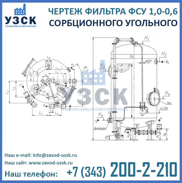 Наш завод (Уральский завод стальных конструкций) является производителем угольных фильтров, сам осуществляет изготовление и реализацию выпускаемой продукции. Приобретая фильтры ФСУ-1.0-0.6 в Новочебоксарске от производителя, Вы приобретаете оборудование без наценок всевозможных посредников, а также значительно экономите свое время. Фильтры ФСУ1.0-0.6 завода УЗСК – это гарантия качества, кратчайшие сроки изготовления и цена, которая Вам понравится.