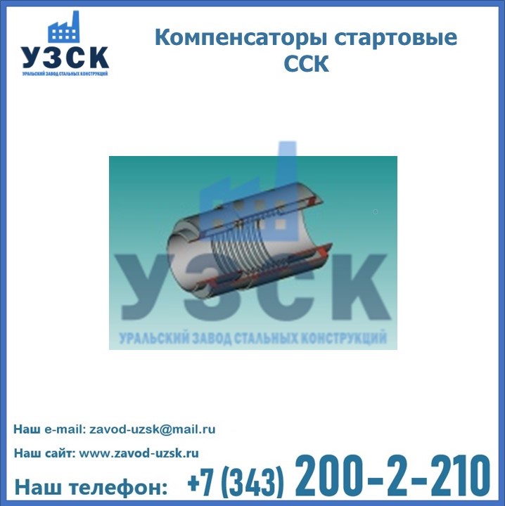 Стартовые компенсаторы, при прокладке прямолинейной системы труб, устанавливается через интервалы, установленные в проекте. В готовую траншею по всей протяженности системы, кроме участков, оборудованных ССК, засыпается грунт. В процессе первоначального нагревочного пуска трубной системы происходит удлинение труб, в результате этого сильфоны стартовых компенсаторов сжимаются. Внешняя стальная оболочка компенсаторов, после нагревания, приваривается. Трубы таким образом фиксируются в грунте, а последующие температурные перепады трансформируются в допустимые стабильные напряжения. Уральский Завод Стальных Конструкций предлагает готовые изделия, а также оборудование под заказ. Наш завод располагает всеми необходимыми возможностями для производства нестандартных компенсаторов ССК. Завод «УЗСК» предлагает большой выбор качественных и надежных сильфонных стартовых компенсаторов, полностью укомплектованных и готовых к эксплуатации. Мы гарантируем соответствие нашей продукции всем требованиям ГОСТ и ТУ, износостойкость и высокую производительность. Наше предприятие поставляет и производит оборудование, имеющее длительную гарантию и большой эксплуатационный ресурс. Если вы хотите заказать сильфонные компенсационные устройства ССК или другое оборудование с доставкой, наши специалисты помогут рассчитать стоимость транспортных расходов и организуют перевозку товара. Вы можете оформить заказ на продукцию на нашем сайте в Новочебоксарске, для этого достаточно заполнить форму обратной связи.