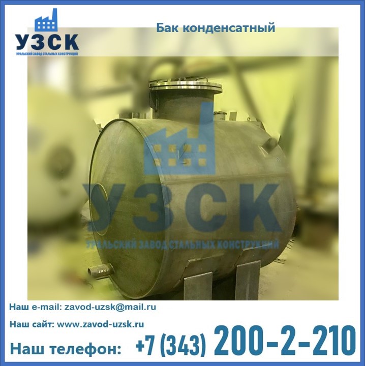 Многие заказчики стараются конденсатные баки купить по выгодной цене в компании «УЗСК» в Новочебоксарске. Причин несколько. Производитель поставляет емкости с полным комплектом лестниц, площадок обслуживания. Бак после гидравлических испытаний покрывают специальной внутренней и наружной краской, накладывают теплоизоляцию или наваривают крепеж для навески минматов. Условия теплоизоляции согласуются с заказчиком.
