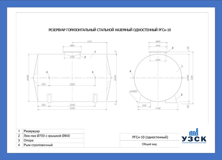 РГСн-10: горизонтальный резервуар одностенный наземного расположения;